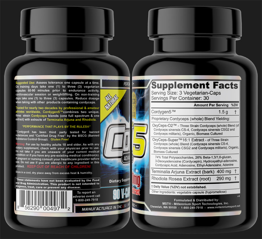 **Cordygen5™ proudly participates in the BSCG's Certified Drug Free program. Please check the BSCG's website for certified lot #'s at the link below. BSCG Millennium Sport Technologies